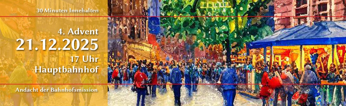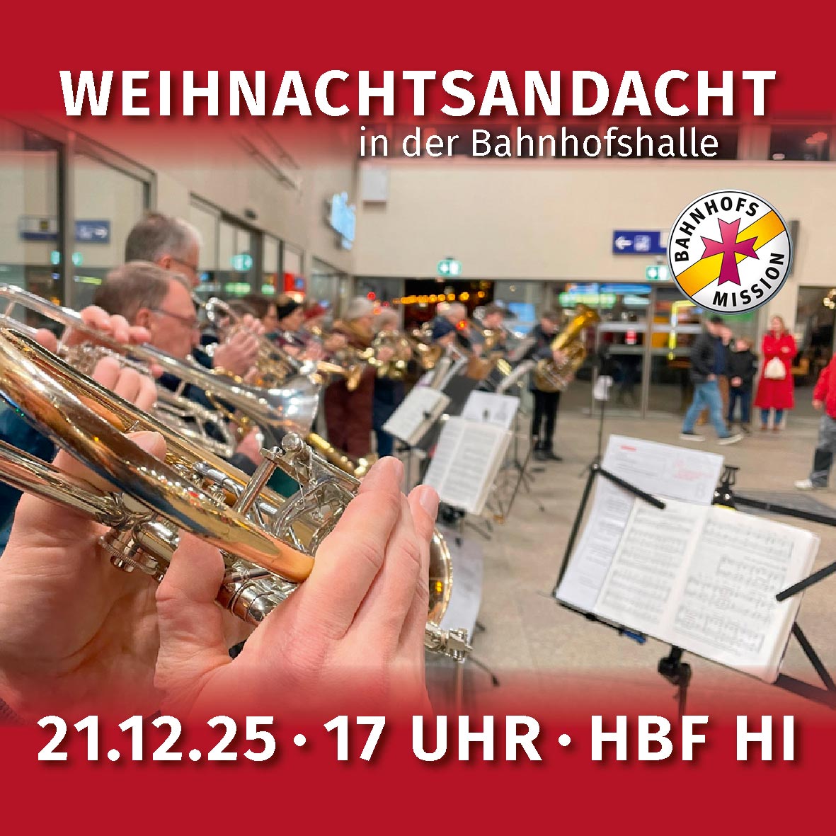 Am 4. Advent um 17 Uhr feiert die Bahnhofsmission in der Eingangshalle des Hildesheimer Hauptbahnhofes ihre Weihnachtsandacht. Gemeinsam mit dem Posaunenchor St:Michael gestaltet das Team der Bahnhofsmission eine 30-minütige Andacht zum Innehalten.